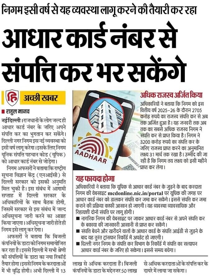 Big Update on Property Tax: अब दिल्ली में प्रॉपर्टी टैक्स भरना आसान! पहले UPIC नंबर याद रखना पड़ता था, अब सिर्फ आधार नंबर डालकर ऑनलाइन भुगतान करें।