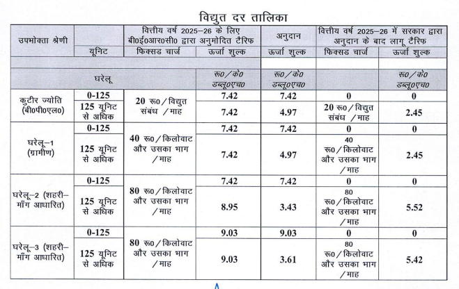 - 1 अगस्त 2025 से 125 यूनिट तक मुफ्त बिजली योजना लागू होने के बाद, इन दरों पर पहले 125 यूनिट के लिए कोई बिल नहीं लिया जाएगा।
