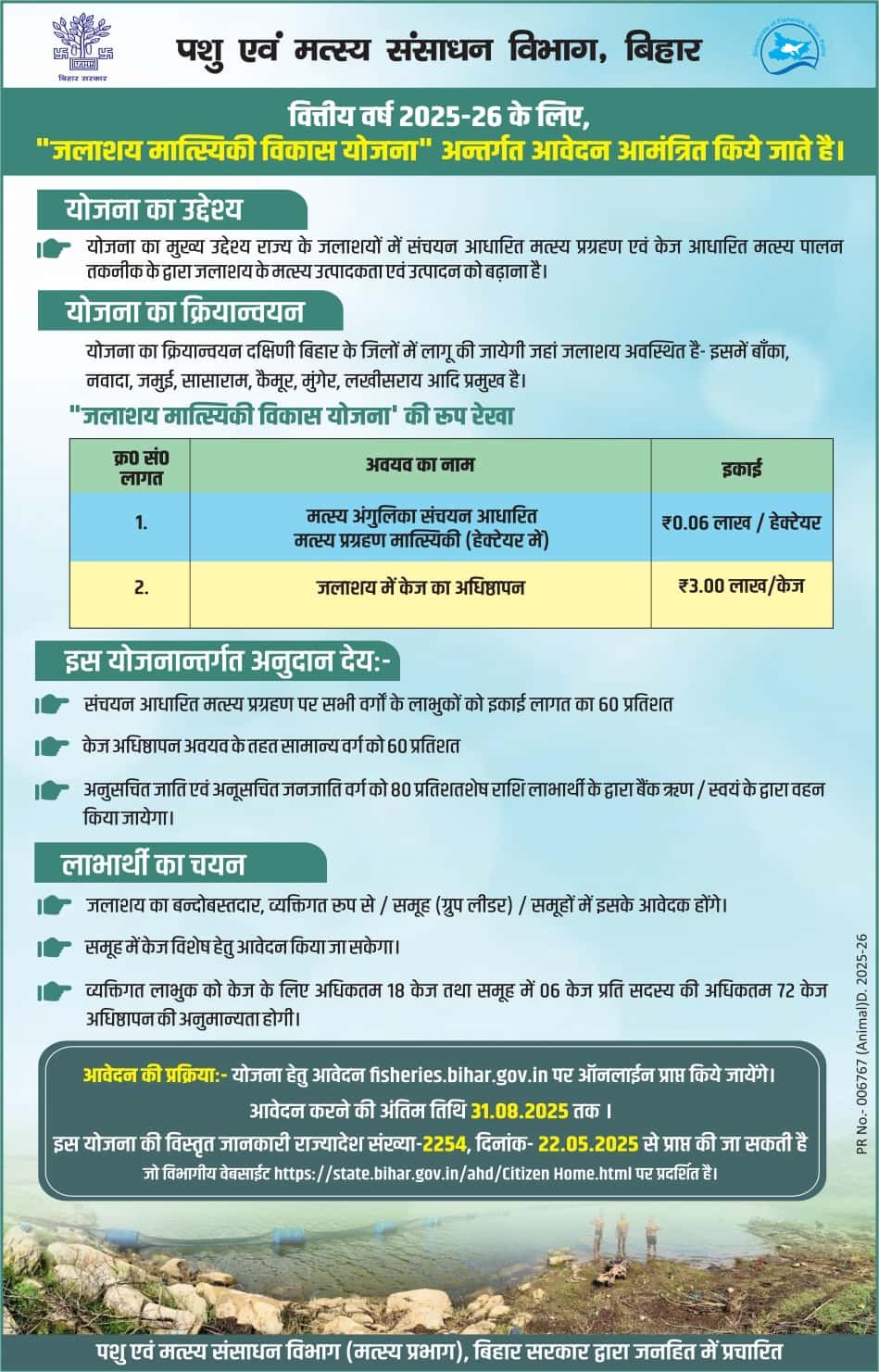 Bihar Jalashay Matsyaki Vikas Yojana 2025