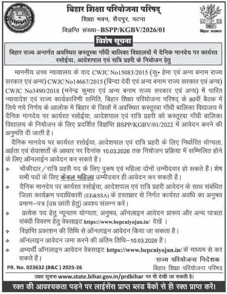 Bihar Kasturba Balika Vidyalaya Bharti 2026: Overviews