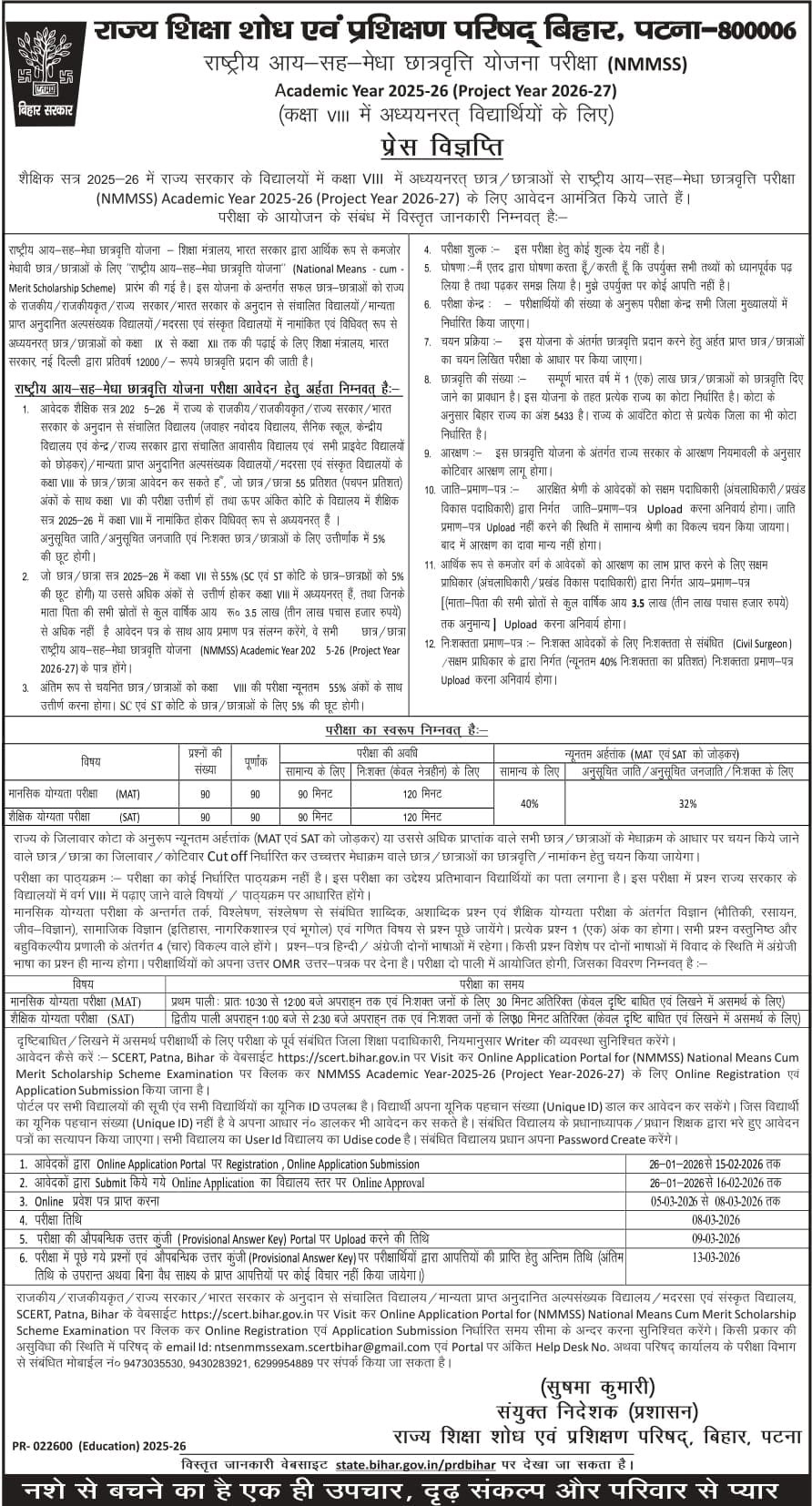 | पोस्ट नाम | Bihar NMMSS Scholarship 2026 |