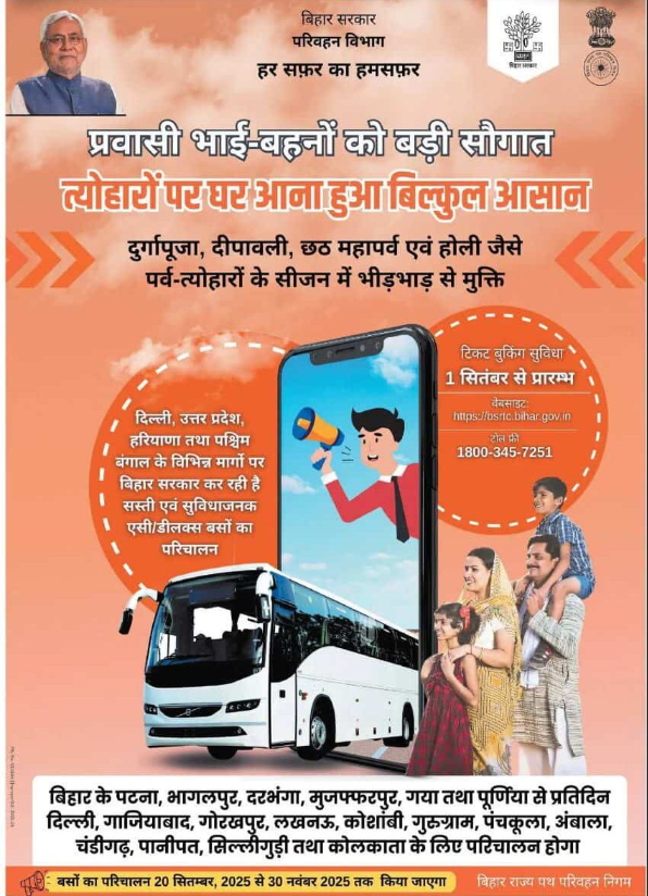 यह योजना खास तौर पर उन लोगों के लिए लाई गई है जो काम, नौकरी या व्यवसाय के लिए बिहार से बाहर रहते हैं। जब दुर्गापूजा, दीपावली, छठ और होली जैसे बड़े त्योहार आते हैं तो हर कोई अपने परिवार के साथ रहना चाहता है। लेकिन यात्रा की परेशानी और भीड़ की वजह से यह संभव नहीं हो पाता।