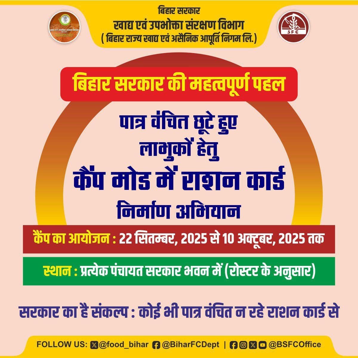 बिहार सरकार का उद्देश्य है कि “कोई भी पात्र नागरिक राशन कार्ड से वंचित न रहे।”