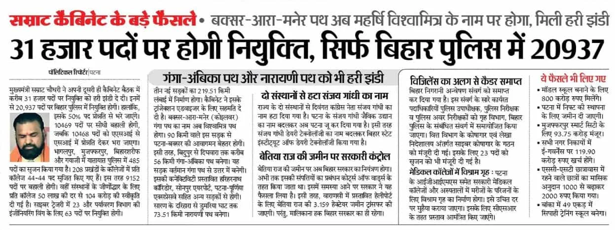 बिहार सरकार का यह फैसला राज्य के बेरोजगार युवाओं के लिए एक बड़ा अवसर है। इतने बड़े स्तर पर भर्ती होने से न केवल रोजगार के अवसर बढ़ेंगे, बल्कि राज्य की प्रशासनिक व्यवस्था भी मजबूत होगी। खासकर पुलिस विभाग में बड़ी संख्या में नियुक्ति होने से कानून व्यवस्था में सुधार की उम्मीद है।