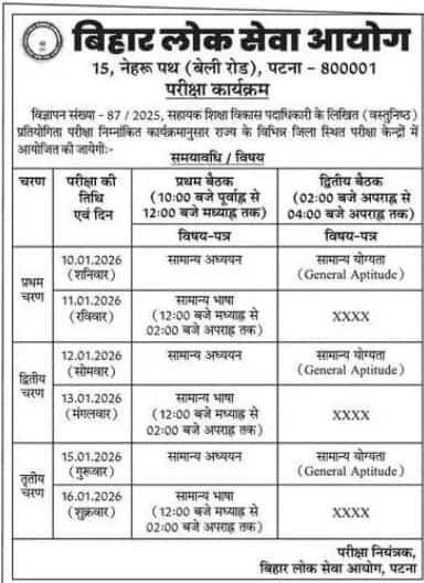 BPSC AEDO Exam Date 2025 Notice Out, बिहार सयाहक शिक्षा विकास पदाधिकारी भर्ती परीक्षा तिथि जारी @bpsc.bihar.gov.in