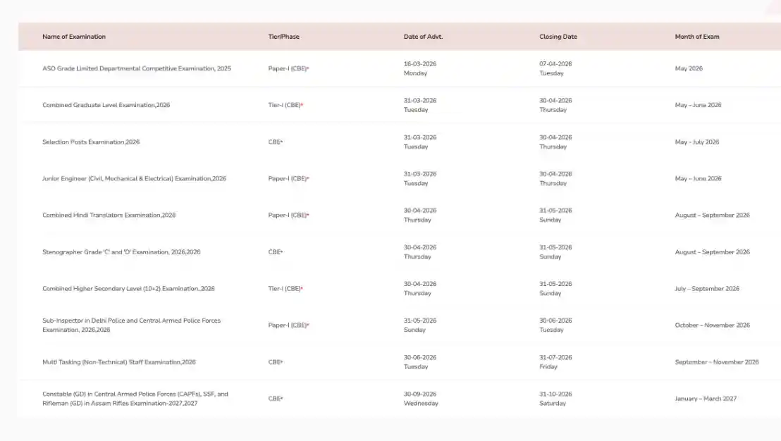 SSC Exam Calendar 2026Download Now