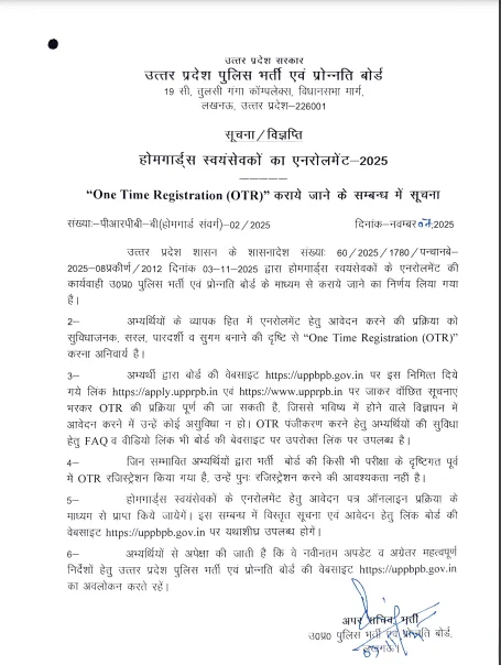 How To Apply UP Police Home Guard OTR Registration 2025?